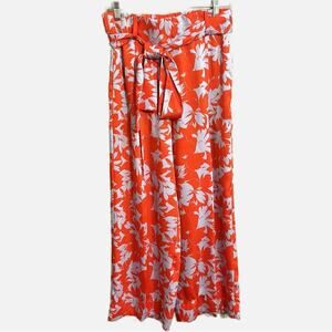 Item in Excellent Preowned Condition. Hidden Side zip closure, Belted half stretch waist (smooth front, stretchy back), 2.5” waistband + belt loops, Tied belt, Deep pockets, Front trouser seams, 100% Polyester, style # L8831. Oversized and flowing. Measurements taken Hanging up: