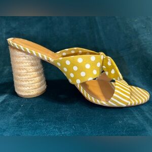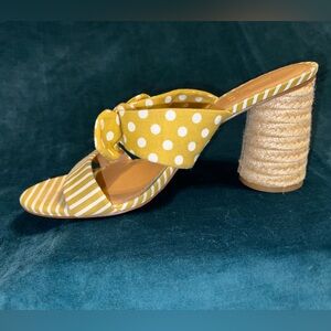 J Crew Raffia Round Block-Heel Sandals Golden Straw Ivory