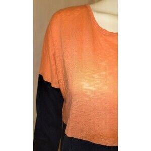 Great colors, almost melon and navy, burnt out so very lightweight and comfortable. Perfect the way it is or you can layer if you like. No shoulder seem so it has the slouchy oversized look and feel. Cotton blend and is super soft. In excellent condition.