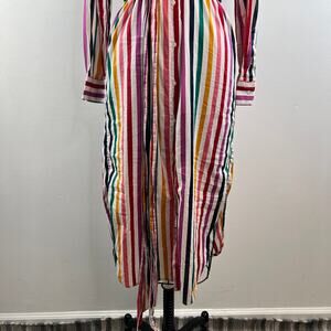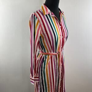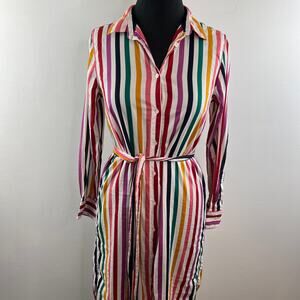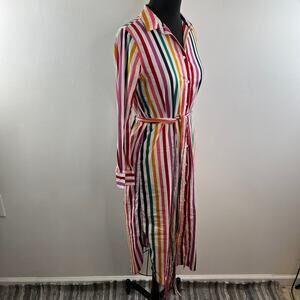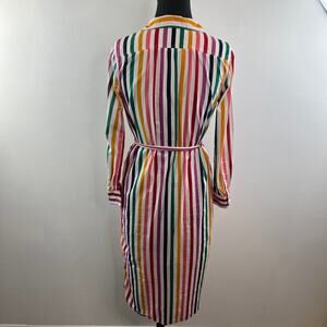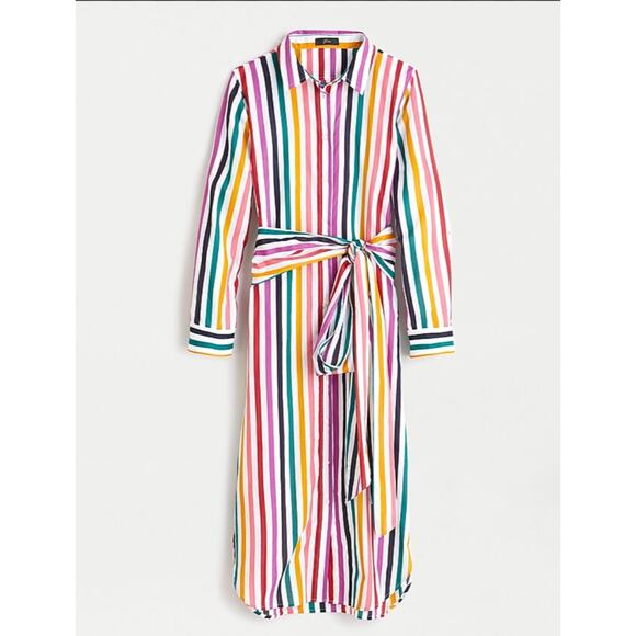 J. Crew Rainbow Striped Shirt Dress Belted Cotton Long Sleeves Knee Length Sz XS