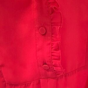 Elegant blouse with ruffled collar. Long sleeves and button front. Perfect for any occasion.