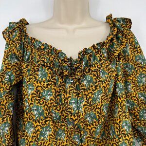J. Crew Ratti Elephant Print Blouse Woman’s size 14 green off shoulder button up