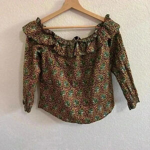 J. Crew Ratti Elephant Print Ruffle Off The Shoulder Top Size 00