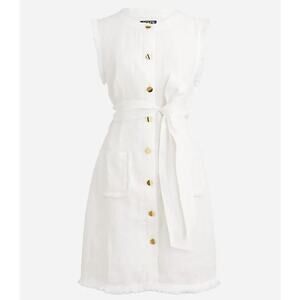 J Crew Raw Hem 100% Linen Belted Mini Trendy Shirt Dress US Womens XS New