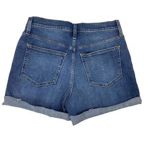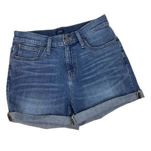 J. Crew Classic denim short in Pacific blue wash. Raw Hem Shorts Style. Can be cuffed or uncuffed. Sits below waist. Zip fly. Traditional 5-pocket styling.