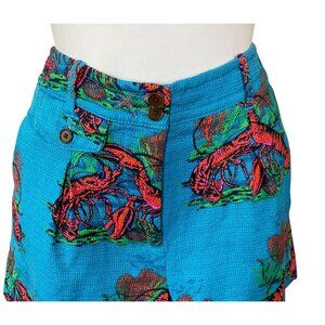 These J.Crew shorts feature a vibrant lobster print on a unique grasscloth textured fabric. Designed with slash and welt pockets, they offer a stylish and practical addition to any wardrobe. Ideal for casual or beach settings, these shorts embrace sustainable fashion with the Re-Imagined initiative.