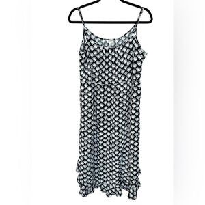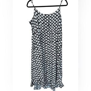 J. Crew Re-Imagined Midi Dress with Ruffle Curved Hem. Black/White Pattern Sz 14
