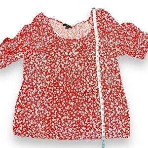 J. Crew Re-Imagined Scoop Neck Top Tossed Bouquet Red Floral Print Women’s Size S