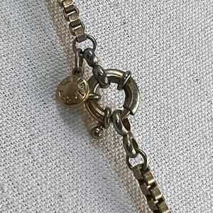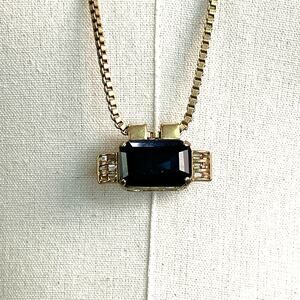 J. Crew Rectangular Blue Pendant Necklace Box Chain Antique Gold Tone