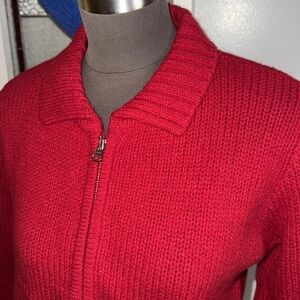 J Crew Red 100% Wool Zip Up Collared Cardigan Sweater SZ Small