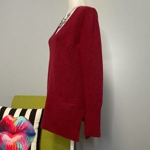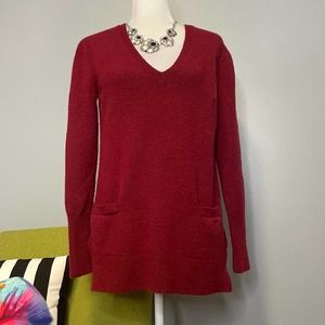 J Crew Red Alpaca Merino Wool V-Neck Tunic Sweater XS