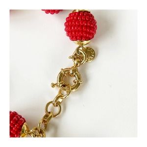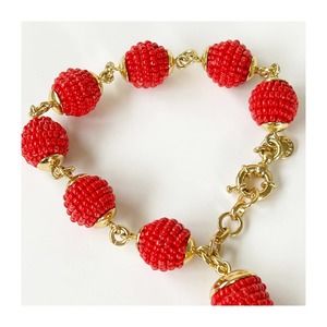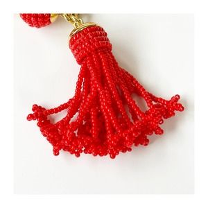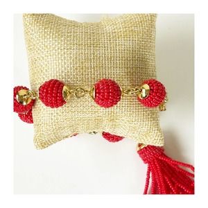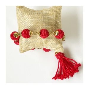 Beaded bracelet with tassel from J Crew in bright cherry red