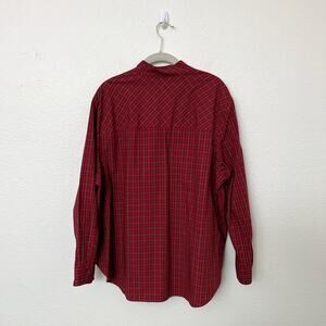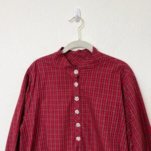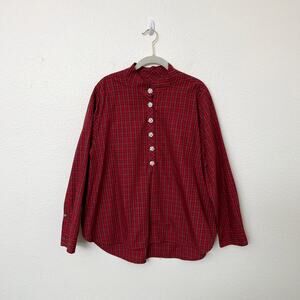 [J. Crew] Red Black Tartan Plaid Jeweled Button Popover Tunic Blouse Size 20