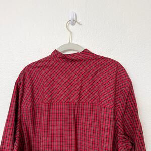 J. Crew Size 20 Red Black Tartan Plaid Jeweled Button Popover Tunic Blouse