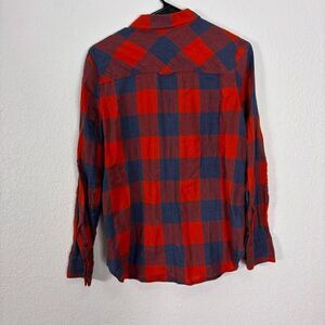 Great pre-owned condition J. Crew Red & Blue Plaid Boy Fit Button Down Shirt Size Women's 6 XX