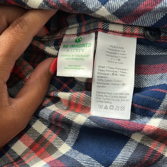 Discover the classic charm of J. Crew's casual button-down shirt, featuring a vibrant red and blue color scheme. Perfect for laid-back occasions, this shirt offers a comfortable fit and timeless style. Its soft fabric and traditional design make it a versatile addition to any wardrobe.