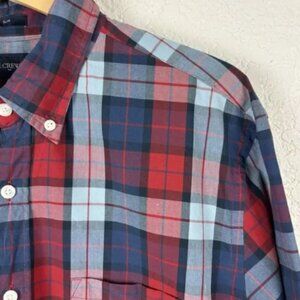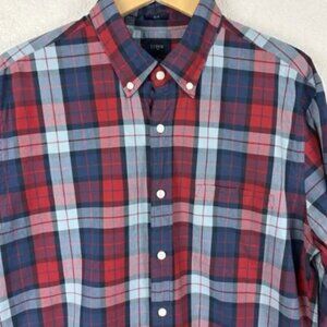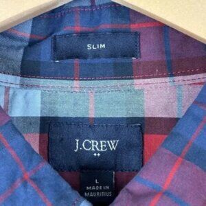 J Crew Red Blue Plaid Men’s Button Up Shirt Size Large Slim Business Preppy Work