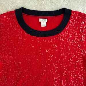 J Crew Red Christmas Sweater Sequin Crew Neck Women's Small Long Sleeve