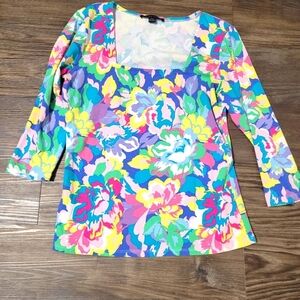 J. Crew Red Floral Blouse Size M Rouched Sleeve Lined