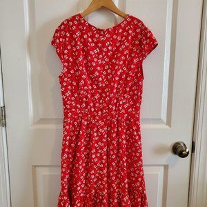 J. Crew Red Floral Faux Wrap Ruffle Summer Dress size 4
