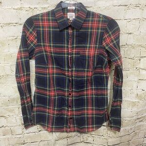 J Crew Womens XS Red Green Plaid Cotton Perfect Fit Button Up in good used condition. No stains, tears or rips.