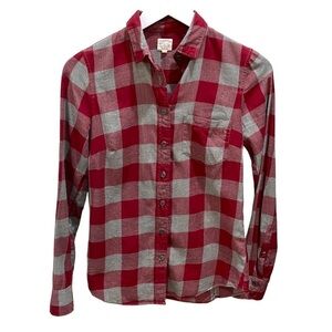 J. Crew Red Grey Plaid Flannel Perfect Shirt SZ XXS