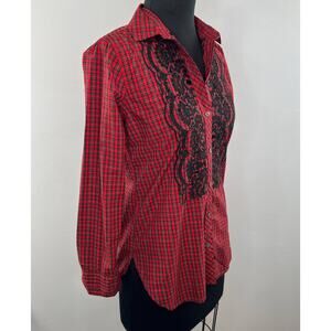 J.Crew Red Plaid Black Embellished Button-Down Long Sleeve Boy Shirt