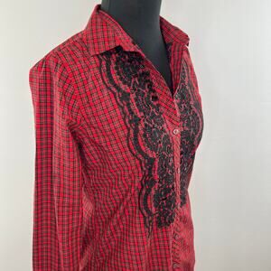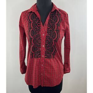 J.Crew Red Plaid Black Embellished Button-Down Long Sleeve Boy Shirt