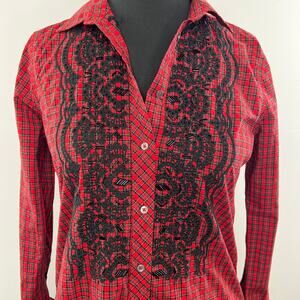 J.Crew Red Plaid Black Embellished Button-Down Long Sleeve Boy Shirt