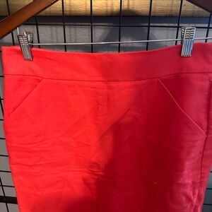Elevate your casual wardrobe with this striking red pencil skirt from J. Crew, perfect for a night out. Its knee-length design offers a sleek and flattering silhouette, making it a versatile addition to any outfit. Crafted with attention to detail, this skirt ensures both comfort and style. Waist about 15.5" across. Length about 21.5"