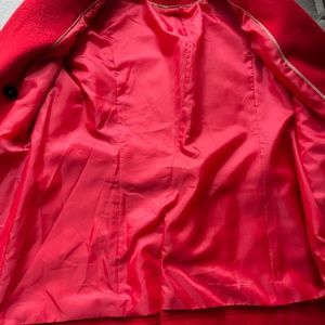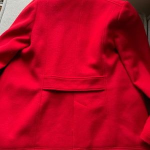 Stylish red pea coat by J. Crew. Features double-breasted design with gold buttons. Perfect for a chic look.