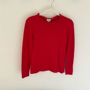 New with tags. Never been worn. This vibrant red blouse from J. Crew features a stylish ruffled design, adding a touch of elegance to your ensemble. The blouse is crafted with attention to detail, ensuring a comfortable fit and a chic look for any occasion.