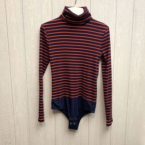 J. Crew Red Striped Ribbed Turtleneck Bodysuit Small NWT