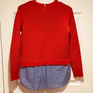 J. Crew Red Textured Knit 100% Wool Crew Neck Shirt-Tail Sweater Size XXS