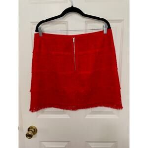 J. Crew Red Tiered Fringe Lace Mini Skirt Size 12| Festival | Boho