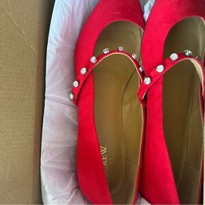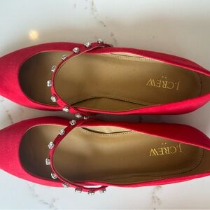 J. Crew Red Women’s velvet Mary Jane flats with studded strap size 10.5