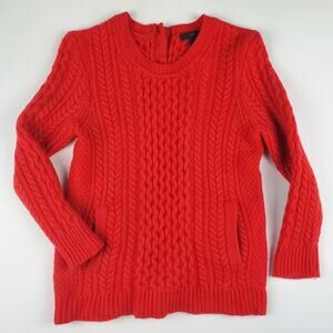 J. Crew Red Wool Cable Knit Crewneck Pullover Sweater Top Pockets Ribbed Women's SIze Medium