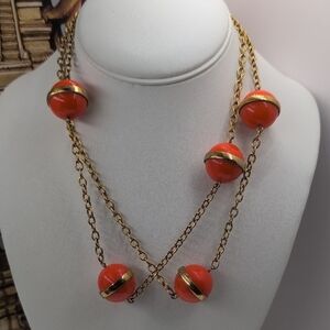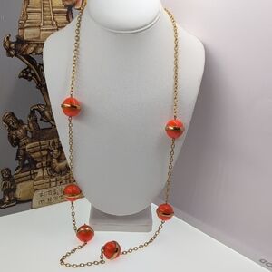 J. Crew Red and Gold 34" Necklace with Elegant Beads