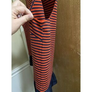J. Crew Red and Navy Blue Striped Ruffle Hem Tank Top Size XL Button Back