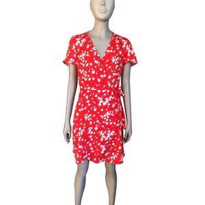 J. Crew Red and White Floral Short Sleeve Dress