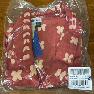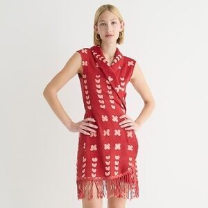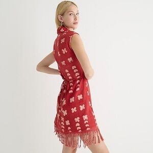 Stylish red dress with white heart pattern. Sleeveless design. Fringe hem detail.