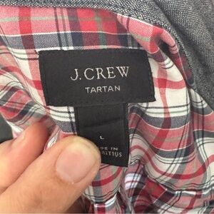 This J. Crew shirt features a classic red and white plaid design, perfect for a relaxed, casual look. Made from lightweight fabric, it offers comfort and style for everyday wear. The long sleeves and button-down style make it a versatile addition to any wardrobe.