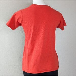 J. Crew red short sleeve t-shirt with Dance It Out on the front. Easy, comfy shirt, does have one very small hole on the bottom, as pointed to in the picture. Size XS