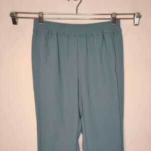 J. Crew Reese tulip hem elastic waist jogger pant. This is a bluish gray color. Size 6. Polyester.