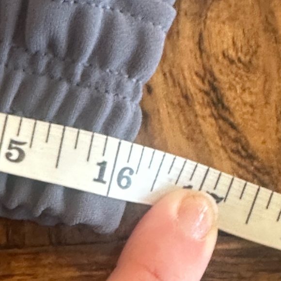 Nice preowned condition, no flaws to note. These have an elastic waistband for pull-on fit, and feature tulip hems. These are a cropped length.