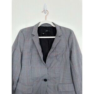 J. Crew Regent Blazer Glen Plaid Gray One Button Pockets Wool Workwear Size 10.