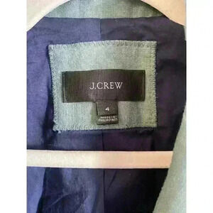 J Crew Regent Blazer Green 100% Linen One Button Closure Preppy Size 4