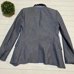 J Crew Regent Ruffle Chambray Denim Blazer Jacket Women’s Size 00
