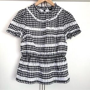 J. Crew Reimagined Daisy Chain Gingham Blouse Black and White Size XS NWT