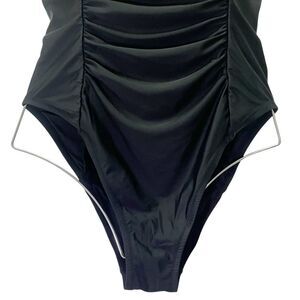 J. Crew Reimagined Square Neck One-Piece Swimsuit Black Ruched Size 14 Slimming
